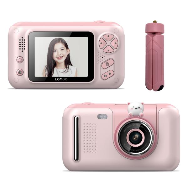 【Usability and Portable】 This camera for kids equipped with 2.4 inches screen and tripod /selfie stick that improves usability, let kids easy to take photos or video. Mini size design matches children's palm makes your child easily to grab and use. TabletopTripod fixed /selfie stick shooting unlock new model for taking photos .